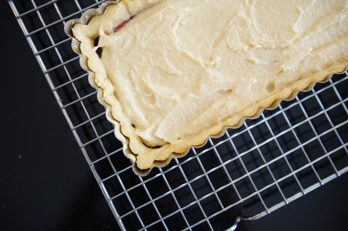 While there are a few steps to making the tart, they’re not complicated and come together quite easily. A buttery and sweet tart shell is filled with jam, frangipane (almond cream), and then topped with a sugar glaze. The word that came immediately to mind after my first bite was “magnificent.” Guys, it really is. It’s magnificent.