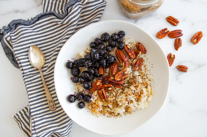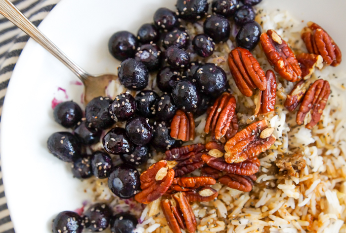 Blueberry and Salted Pecan Breakfast Grain Bowl