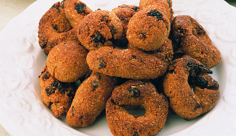 In a bowl, whisk the eggs, honey and yogurt. Then mix the baking powder, bran and flour. Add finely chopped figs, apricots, dried apples to the dough. Take some small pieces of walnuts out of the dough by dampening your hands slightly and form a bagel shape. Place the cookies you have prepared on the tray you have covered with greaseproof paper. Bake in a preheated 180 degree oven for 20-25 minutes. Take the cookies out of the oven and serve them warm or cold.