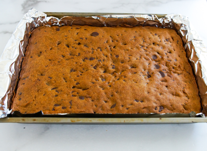 Cool completely on a wire rack. To cut, lift the foil from the pan. Use a bench scraper to cut into bars.