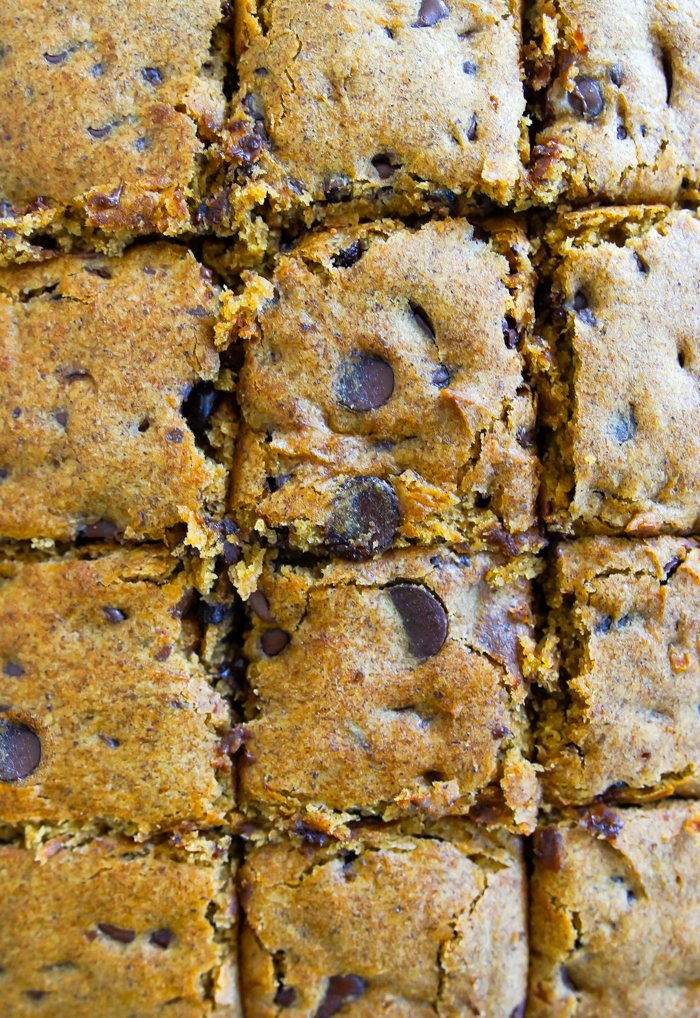 This is a take on a perennial favorite around here: pumpkin chocolate chip bars. I make them every year, my sister makes them every year, many of YOU make them every year, too. They’re soft, cakey, and full of warm fall spices. This gluten-free version makes the bars a bit softer but still oh-so-good!