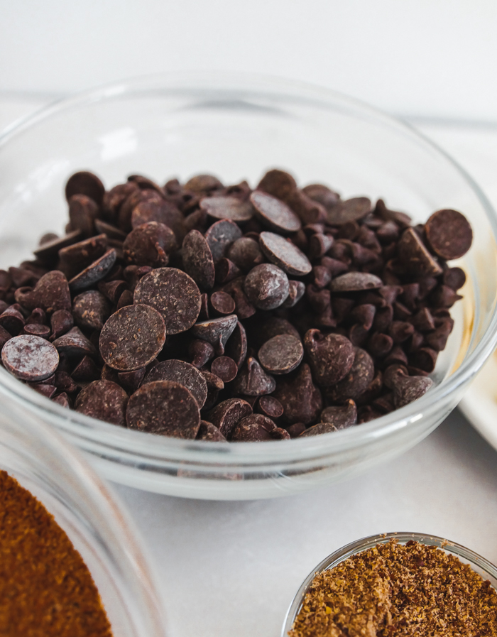 Let’s talk about the chocolate chip situation. I had 5 bags of chocolate chips in my pantry, none with enough to make this recipe. So, I combined them all. I started with coconut sugar chocolate chips from Guittard. I found using them in a mix with other chocolate chips worked well. The coconut sugar chips are flat and wider, while typical chocolate chips are taller and, er, beefier. Can chocolate chips be beefy? You know what I mean. I also had to resort to using some mini chocolate chips in the mix. It all worked out fine in the end, but guess who is replenishing her chocolate chip stash today?