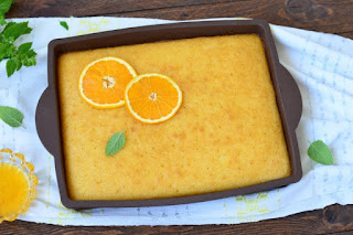 After the cake is done, pour the prepared orange sauce on it, leave it to cool slightly, cut it and serve warm or cold as desired.