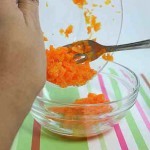 3- Then add the mashed carrots to the bowl containing the water, and the amount of water should be enough so that the consistency of the mask becomes consistent.