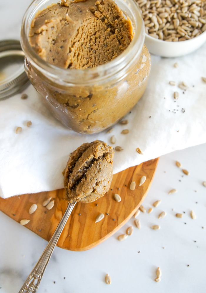 Heavy on the vanilla, a little salty, and with the tiniest bit of crunch from chia seeds, this vanilla sunflower-chia butter has replaced my beloved almond butter.