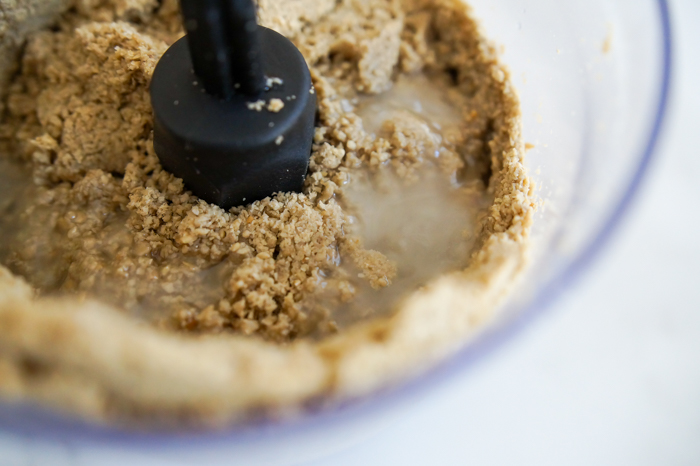 When the sunflower seed butter is starting to smooth out, about 10 minutes for my food processor, add in the coconut sugar and date syrup. Continue alternating between low and high power, scraping frequently. You may notice the butter getting warm and steam developing inside. This is normal due to friction. Stop, remove the lid, and stir to cool. Steam inside if different than smoke. If your food processor starts to smoke…well, that’s a different issue.